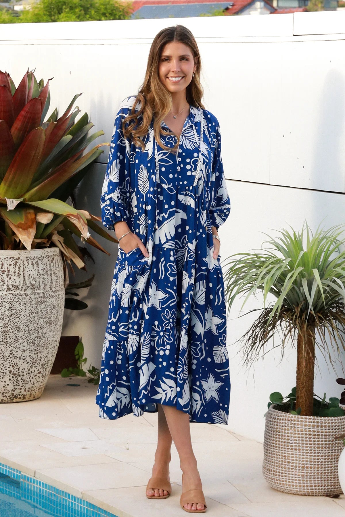 The Olivia Dress by Salty Palm is your go-to for relaxed, resort-ready dressing. Cut in a fluid 100% rayon, this midi silhouette drapes beautifully against the body — soft, breathable, and made for long days and easy evenings. Featuring an exclusive print, every Olivia is one of a kind.