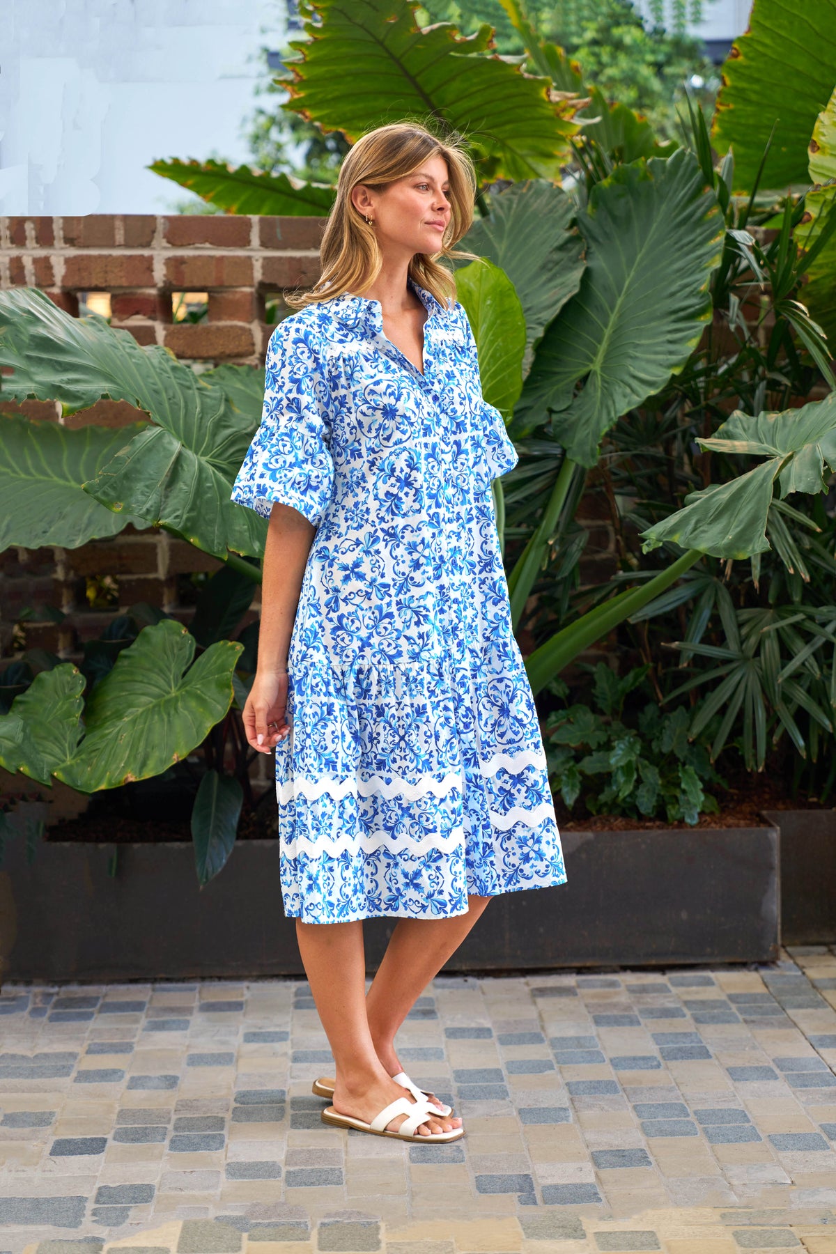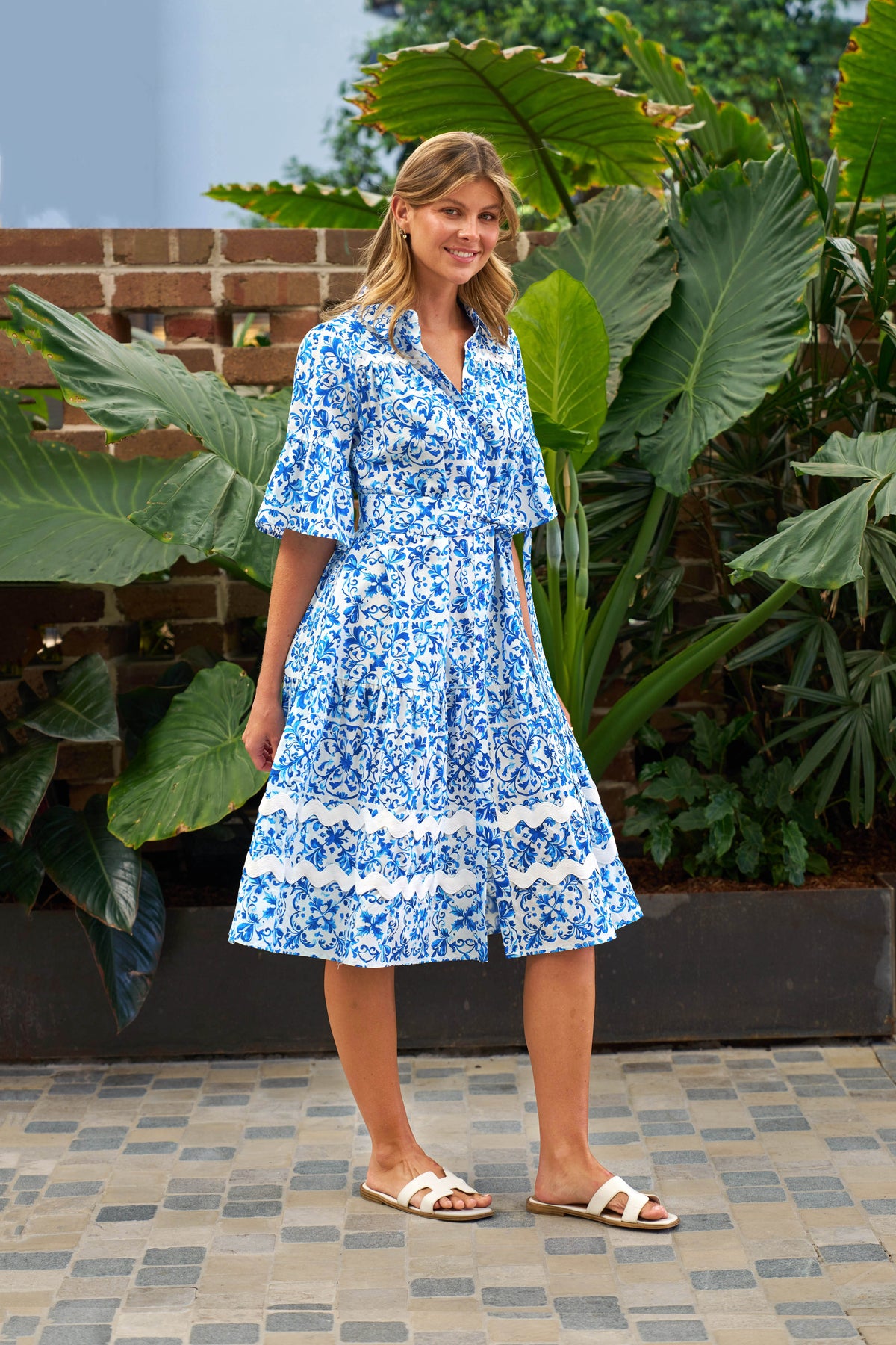 Say hello to the Ameera Midi Dress in a sweet porcelain print that's guaranteed to lift your spirits! This charming blue and white print brings a beautiful pop of colour to your wardrobe, combining playful details with effortless wearability for a dress that makes every day feel special.